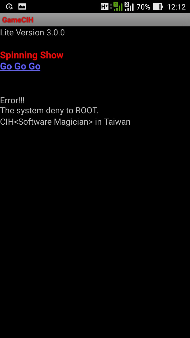 Đọc xem tiết >> [Bách Khoa Toàn Thư] Giải đáp mọi thắc mắc]Các pro cho mình hỏi, mình đã root máy và đã kiểm tra rôt thành công. Nhưng khi mình dùng các ứng dụng để hack game như game killer hay game hacker thì khoảng 10s là bị thoát mất. Còn những ứng dụng như daxattac hay guadian thì 1s là thoát. Riêng với game cih thì như hình.