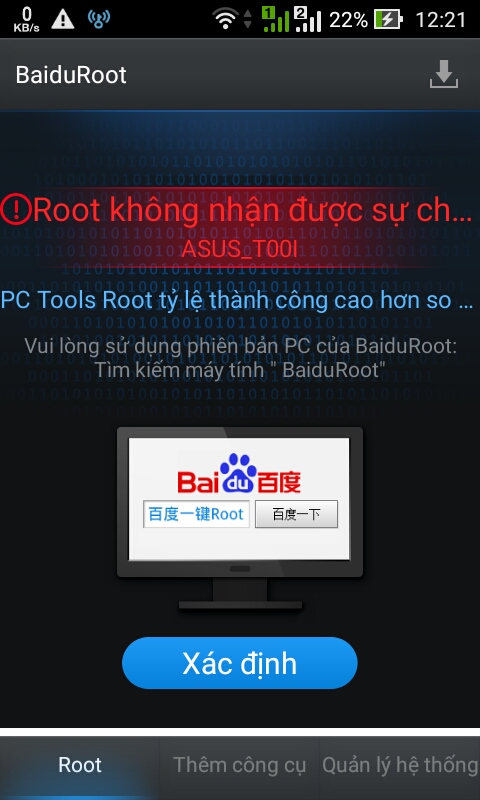 con zenphone4 của em chưa root lần nào mà em đã lên hđh 5.0 lolipop rồi giờ xài baidu có root được không vậy